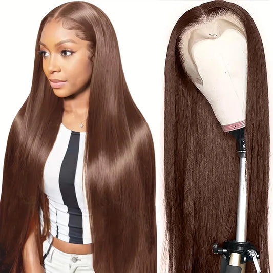 #4 Chocolate Brown Straight Human Hair Wig 13x6 Lace Frontal Human Hair Wig Pre Plucked 46 Inches 200 Density Wigs For Women