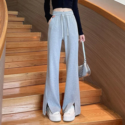 2025 Female High Waist Baggy Thin Sweatpants Lady Classic Solid Bell Bottom Trousers Women Fashion Casual Straight Leg Pants
