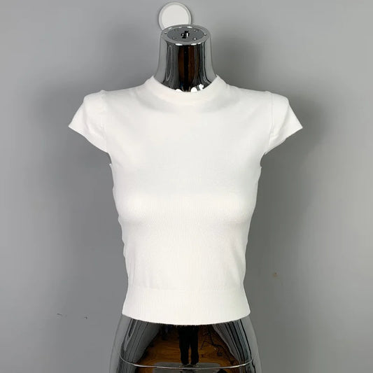 Regular price £29.99Regular priceUnit price / per£29.99Sale price £29.992026 Korean Style Slim O-neck Short Sleeve T-Shirts Women's White Elasticity Base Tee Solid Versatile Sexy Knitted Crop Tops